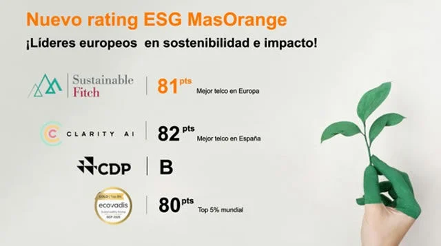 Sustainable Fitch reafirma, además, el rating de MasOrange en ‘2’ (en una escala de 1 a 5, siendo 1 la máxima puntuación), consolidando su posición como referente en ESG en el sector europeo de telecomunicaciones.